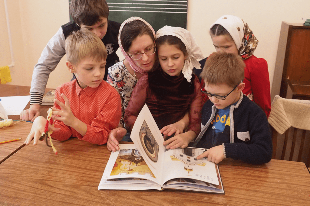 Учительница воскресной школы спрашивает своих учеников по дороге на церковное собрание: «Почему в церкви необходимо вести себя тихо?»