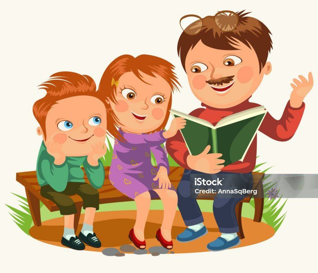 Отец рассказывает детям историю грехопадения Адама и Евы: