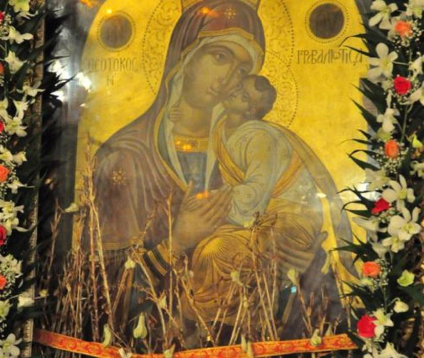 В день Благовещения, 7 апреля, верующие приносят в храм белые лилии, которыми украшают икону Божией Матери Панагия. Эти лилии помещают в киот иконы и там они высыхают. К празднику Успения Пресвятой Богородицы ( 28 августа ), через пять месяцев, на засохших стеблях распускаются свежие лилии, что является настоящим чудом. Лилии, пролежавшие у иконы без корней и воды, образуют свежие бутоны на сухих стеблях.