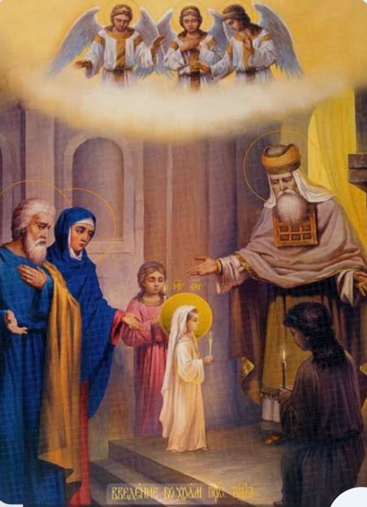 В этот день вспоминают как святые Иоаким и Анна привели свою трёхлетнюю дочь Марию в Иерусалимский храм, чтобы посвятить её служению Господу.
