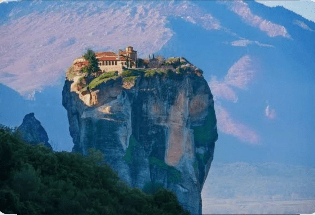 Это православные монастыри, построенные на гигантских обрывистых скалах и величественно устремлённые в небо, как подарок монахам, стремящимся приблизиться к Богу.