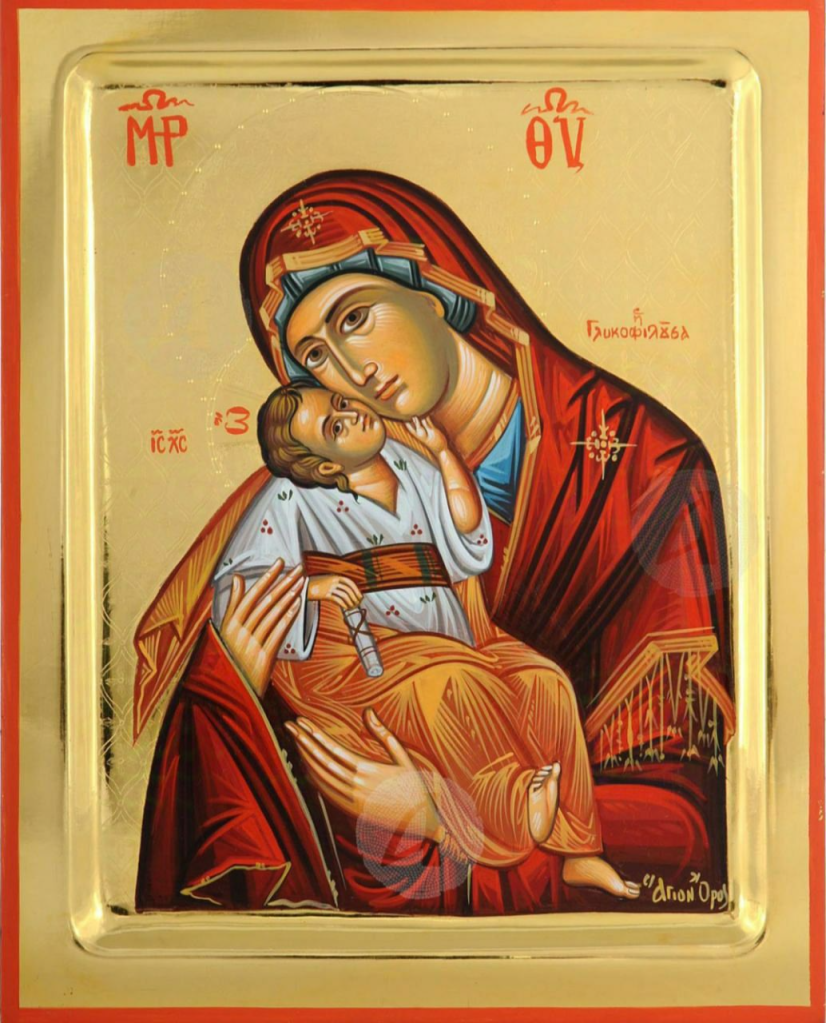 история иконы Божией Матери Сладкое лобзание Гликофилусса, как икона Сладкое лобзание появилась на Афоне, чудеса Филофеевской иконы Божией Матери, значение и происхождение иконы Сладкое лобзание, где находится икона Гликофилусса, чудесное спасение богомольца по молитве Богородице, история афонской иконы, иконы написанные святым евангелистом Лукой, что символизирует икона Сладкое лобзание, афонские чудотворные иконы Пресвятой Богородицы, Филофеевский монастырь на Афоне, афонские чудеса Богородицы, православные предания об иконах Луки, Сладкое лобзание и её почитание в Православной Церкви