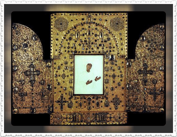 Одно из преданий рассказывает, что Тамара однажды собиралась к литургии в Гелатский монастырь. В это время ей доложили, что какая-то неизвестная нищая просит у ее терема милостыни. Царица приказала ей подождать. Когда же она через некоторое время вышла из терема, чтобы подать милостыню, нищей уже не было, и нигде ее не могли отыскать. Тамара встревожилась. Подумав, что в лице нищей она отказала Самому Господу, она сняла с себя то, что было причиной замедления — царскую повязку, и возложила ее на образ Богоматери.
