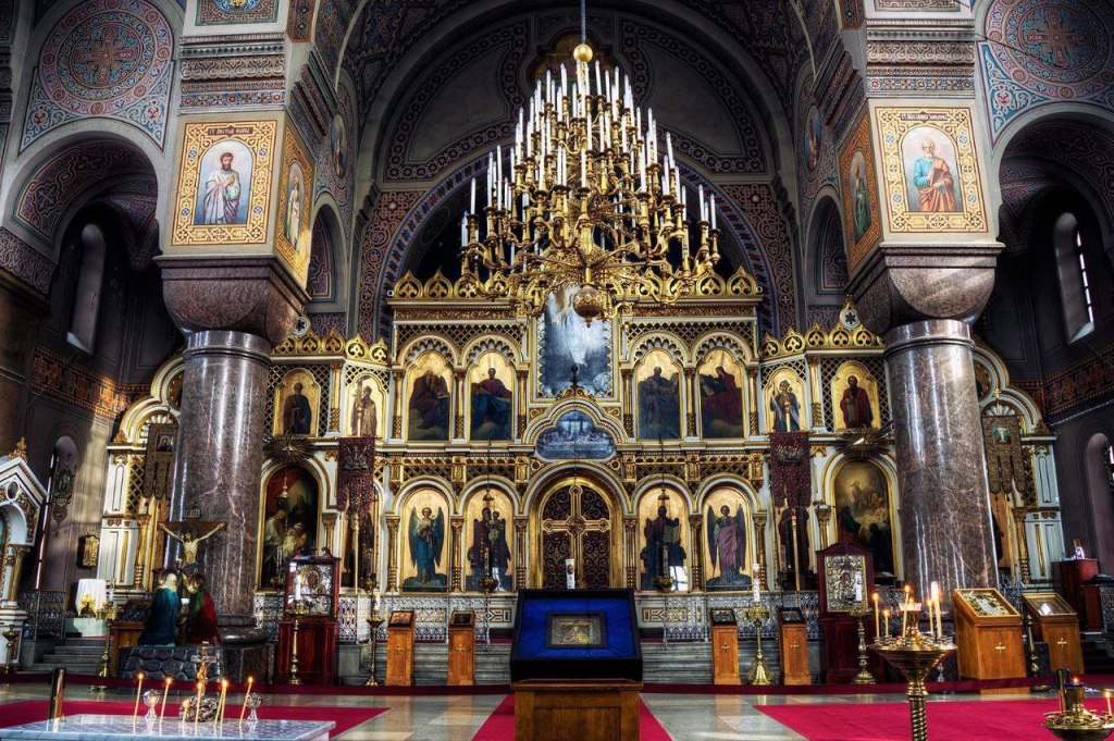 Внутреннее убранство храма Успения Пресвятой Богородицы в Хельсинки.