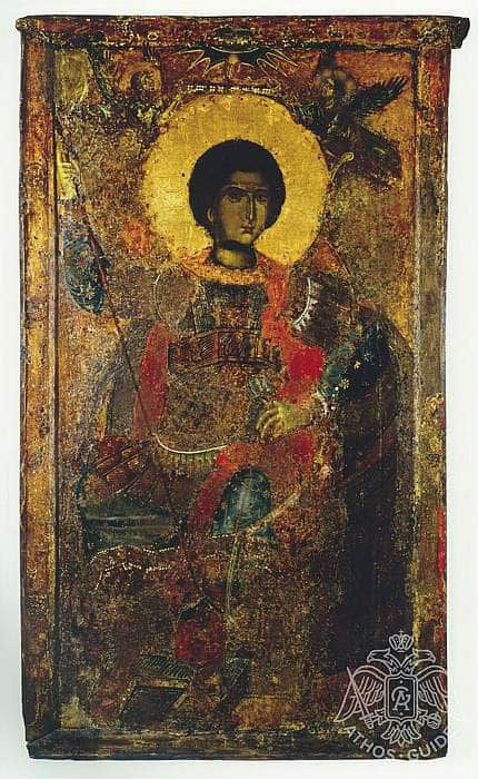 Вы можете найти эту публикацию по следующим поисковым запросом: история чудотворной иконы святого Георгия в монастыре Ксенофонт, как икона из периода иконоборчества попала на Афон, предание о том как икону бросили в огонь и ударили ножом, почему на иконе видна рана из которой текла кровь, как икона святого Георгия приплыла по морю на Святую Гору, в чем помогает икона святого Георгия из Ксенофонта, иконография святого Георгия сидящего на троне, где находится святой источник на месте обретения иконы.