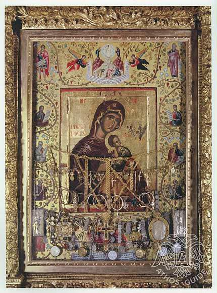 Вы можете найти эту публикацию по следующим поисковым запросом: чудотворная икона Богородицы Всемилостивой Заступницы в часовне Кутлумуш на Афоне, предание о защите монастыря Кутлумуш от пиратов невидимостью Богородицы, иконография Страстной Богородицы с одним ангелом символы Страстей Кутлумуш, тип Страстной Богородицы Андреас Рицос XVI век Кутлумуш Афон, описание иконы Богоматери Страстной с Младенцем и Архангелом Гавриилом Кутлумуш, рама иконы Всемилостивой Заступницы с пророками и Преображением Кутлумуш, фреска Всемилостивой Заступницы с внешней стороны часовни Кутлумуш Афон