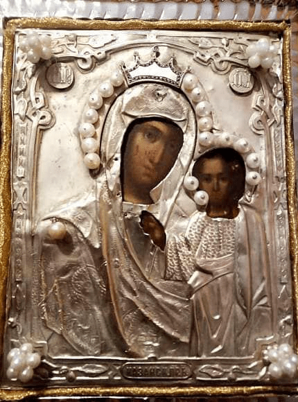 Икона является точной копией Казанской иконы Божией Матери. Там же был создан бронзовый оклад, который украшает ее и сегодня.